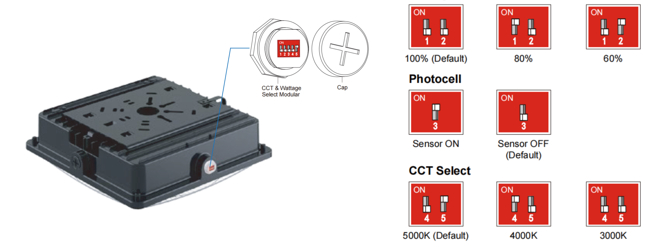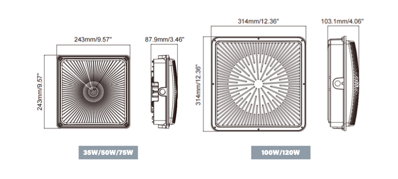 KSCP01-75W-CCT9.57"x9.57"x3.46" (243×243×87.9mm)45/60/75W Selectable3000K/4000K/5000K Adjustable>705800/7800/9700160°0-10V Dimmable